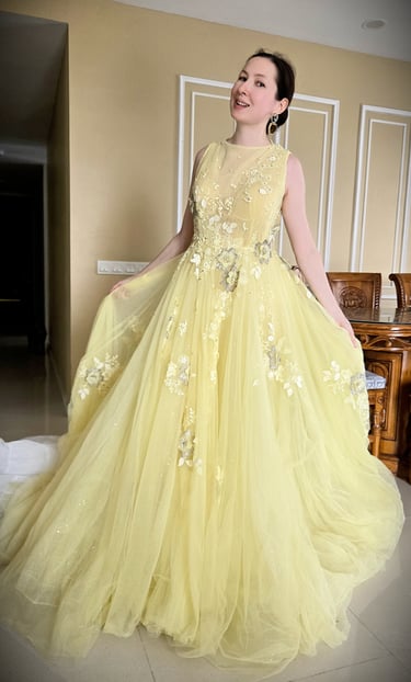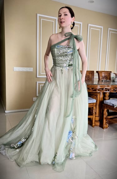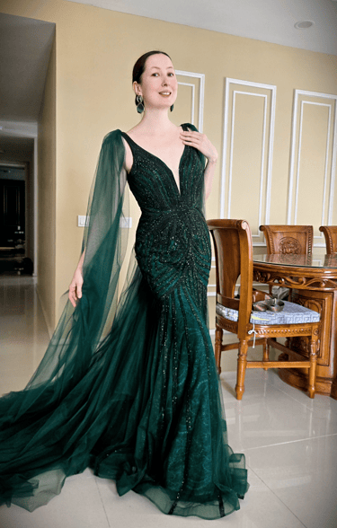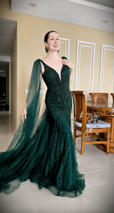 Each gown I wear is part of the performance itself: elegant, expressive, and made to complement the emotion of the music. Many are tailored or brought from Europe, each valued over RM5,000.